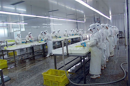 本公司是一家以水產(chǎn)品加工為主的出口型企業(yè),于2004年9月建成并正式投產(chǎn)。公司廠房完全按照歐洲聯(lián)盟的標(biāo)準(zhǔn)設(shè)計(jì)施工,目前占地14000平方米,建筑面積8000平方米,其中加工車間1600平方米。公司日速凍能力達(dá)100噸,儲(chǔ)藏庫(kù)容量為5000噸,主要加工蟹類、貝類、頭足類及魚(yú)蝦類水產(chǎn)品,產(chǎn)品銷往日本、東南亞及歐盟地區(qū)。